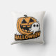 A lively ghost playfully emerges from a carved pumpkin, capturing the whimsical spirit of Halloween in a festive and colourful design.