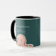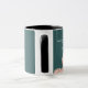 This coffee mug features a clean and modern design with a metal green exterior and a contrasting white interior. The main visual element is a cheerful gingerbread figure at the bottom of the mug, depicted in a soft brown tone with white icing accents, including a bow tie and arm decorations. The minimalist illustration adds a playful and festive touch to the overall design. The layout emphasizes simplicity, with ample white space around the artwork for a refined look.