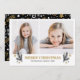 Cheerful Gold Black White Pines Christmas 2 photo Invitation
