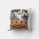 Cheerful Halloween ghost atop a carved pumpkin Cushion