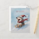 Cheerful hedgehog rides sled down, Christmas Postcard