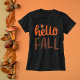 Welcome the autumn season with open arms in our delightful 'Hello Fall' t-shirt. This charming design features a playful, hand-lettered style that captures the warmth and excitement of fall's arrival. The word 'hello' is written in a vibrant orange that evokes the colour of changing leaves, while 'FALL' stands out in a rich brown reminiscent of tree bark and acorns. Speaking of acorns, a cute little acorn perches atop the 'hello,' adding a whimsical touch that brings a smile to everyone who sees it. This small detail perfectly encapsulates the natural beauty and bounty of the autumn season. The casual, friendly lettering style gives this shirt a approachable and fun vibe, making it perfect for fall festivals, pumpkin patch visits, or casual outings on crisp autumn days. It's an ideal way to express your love for the season and spread a little fall cheer wherever you go. Suitable for all ages, this t-shirt is a great addition to any fall wardrobe. It's comfortable enough for everyday wear but festive enough to make you feel like you're celebrating autumn with every step. Whether you're sipping a pumpkin spice latte or jumping in a pile of leaves, this shirt lets everyone know you're fully embracing the fall spirit.