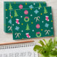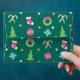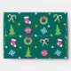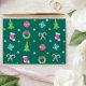 Christmas celebration pattern envelope with Christmas tree, ball, candy cane, snowflake, wreath, garland, and sock decoration ornament elements. Express your Christmas spirit and joy with this product!