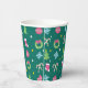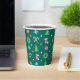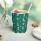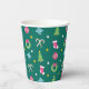 Christmas celebration pattern paper cup with Christmas tree, ball, candy cane, snowflake, wreath, garland, and sock decoration ornament elements. Express your Christmas spirit and joy with this product!