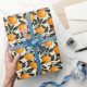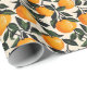 This wrapping paper features a cheerful and lively design with a repeating pattern of stylized oranges and leaves on a light beige background. The vibrant orange fruits are surrounded by deep green foliage, creating a fresh and playful aesthetic perfect for any gift-giving occasion. The clean, modern layout emphasizes clarity and simplicity, making it an ideal choice for those seeking a stylish yet accessible look. Whether you're celebrating a birthday or just want to add a touch of citrusy charm to your presents, this design is sure to delight.