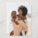 This wedding invitation design captures a joyful beach scene with two individuals sharing a carefree moment. The layout features a horizontal composition, emphasizing the expansive ocean and rocky background, while warm tones of soft peach and white create a harmonious contrast against the natural blues and greys. The photographic art technique highlights realistic details, conveying an authentic and spontaneous feel typical of lifestyle photography. The cheerful mood is enhanced by broad smiles and relaxed postures, making it perfect for celebrating love and companionship in a serene setting.