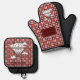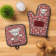 Cheerful red and white tartan design oven mitt and pot holder,Part of the Plethora of Patterns Collection. Reads Baking Pro on one and Alana's Bakery on other. Text is for customising.