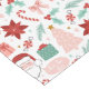 This table cloth features a cheerful holiday design with Santa, presents, pink Christmas trees and candy canes.