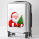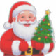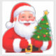 Vibrant cartoon Santa smiles warmly, holding a small decorated Christmas tree against a blue sky. Perfect for holiday greetings, family themes, and festive retail campaigns. Great for seasonal banners, social posts, and gift guides.