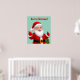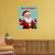 A joyful Santa Claus surrounded by festive decorations, Christmas trees, and wrapped presents, celebrating the holiday season with happiness and warmth, bringing magical cheer to children and families alike.