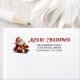 This personalised Christmas return address label features a cheerful Santa Claus illustration, sitting beside the address, ready to bring holiday joy. The festive "Merry Christmas" greeting in bold red lettering adds a warm and welcoming touch, perfectly complementing the classic holiday theme. With space to customise your name and address, it's an ideal way to spread holiday cheer while ensuring your cards and packages have a professional and festive look. Perfect for sending out Christmas greetings, invitations, or holiday gifts, this return address label is a charming addition to your holiday mail.