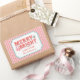 This Christmas sticker features a cheerful design with text that says "Wishing you a Merry & Bright Holiday Season." You can personalise with your name at the bottom. On the back is another coordinating pink and red diagonal stripe pattern.
