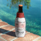 This Bottle Cooler design features a cheerful Santa face on a pink background with the greeting "Merry Christmas" on Santa's beard.