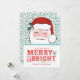 Cheerful Santa Merry & Bright | Pink and Red Holly Holiday Card