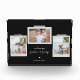 Cheerful sentiments snapshot photo block. Features, 3 framed photos with scrapbook style washi tape accents, two template text lines for your message and names with heart detail in white on black slate colour background.