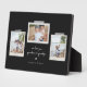 Cheerful sentiments snapshot photo plaque. Features, 3 framed photos with scrapbook style washi tape accents, two template text lines for your message and names with heart detail in white on slate black colour background.