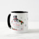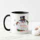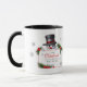 The design includes a cheerful snowman holding a sign with Christmas and New Year greetings against a clean white backdrop. This mug makes a wonderful gift for individuals of all ages, adding a festive touch to any home during the holiday season while sipping on a beverage of choice.