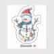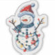 A cheerful snowman stands happily, decorated with colourful lights and a vibrant red hat. Its carrot nose and warm smile spread festive joy, making it a perfect symbol of Christmas spirit.