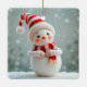 Cheerful Snowman Figurine with Holiday Hat Ceramic Ornament