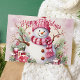Spread holiday joy with this adorable card featuring a cheerful snowman wearing a pink scarf, surrounded by festive gifts and holly. Perfect for sending warm holiday greetings to friends and family, this card adds a whimsical and charming touch to your holiday celebrations.