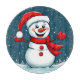Happy snowman in a Santa hat and scarf on a snowy background, perfect for Christmas decor and winter themes.