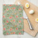A cheerful pattern of pretty pink peach flowers on a mint background