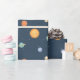 A cute space theme pattern that comes with doodles of the sun and various colourful planets including Earth that has wacky clouds as eye brows. Great for wrapping presents for a space themed party!