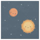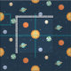 A cute space theme pattern that comes with doodles of the sun and various colourful planets including Earth that has wacky clouds as eye brows.