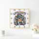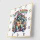 Cheerful turtle skateboarding at a vibrant party square wall clock