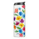 A vibrant watercolor design featuring a delightful circular arrangement of colourful flowers in soft, translucent hues. This charming botanical design showcases blooms in shades of coral pink, sunny yellow, sky blue, deep purple, and warm orange, complemented by fresh green foliage and delicate blue accent dots. Personalise with an initial.