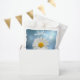 A cheerful white daisy set against a luminous starry sky background surrounded by easily customisable text decorates these favour bags.