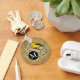 A cute, cheery, bright yellow bird perches on a twig embellished with stylised swirls and leaves on a light brown background in this naturalistic illustration. Personalise the black circle beside the warbler with a white monogram. Makes a unique outdoorsy gift for birdwatchers, nature lovers, hikers and outdoorsmen!