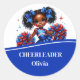 This classic round sticker is shown with a cute cheerleader print with a sample name, customise with this template shown and change the name to yours.