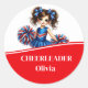 This classic round sticker is shown with a cute cheerleader print with a sample name, customise with this template shown and change the name to yours.