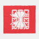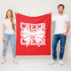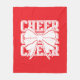 Fleece blanket is shown in a colour of red with a white cheer bow print.