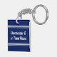 Personalised Cheerleader Keychains with Your Colours and Text. Type in the year, team name, cheerleader's name or Your Text. You can change the navy blue background and blue and white text, on the front and back. OR, CALL me, Designer Linda: 239-949-9090, to change the blue and grey and white Pom Pom colours, along with the other colours of these super cute pom pom megaphone cheer gift ideas.