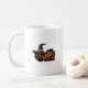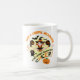 Cheerleaders will be flying for joy with this fun Cheerleader's Halloween mug. On one side is a cute cheerleader dressed as a witch complete with orange and black pompoms, flying in midair. Her funny black witches cat is flying beside her while creepy bats fly above. Below a happy pumpkin completes the Halloween theme. The Halloween slogan reads: 'Have a Cheerful Halloween, Flying Without Broomsticks - CHEER!' The Halloween Cheer theme continues for on the back of the mug there is a Witches hat, two pompoms and a cheerleaders megaphone. This fun Halloween mug is great for any cheerleader of any age! It's perfect for the Halloween and throughout the month of October!