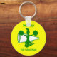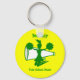 Cheerleader's key chain with cheer megaphone and cheerleader in green, white, and yellow. Customise with your name and school name, change text or remove text. The background colour can be changed or other colour choices are available. Great gift or stocking stuffer for the cheerleader in your life.