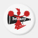 Cheerleader's magnet with cheer megaphone and cheerleader in red, white, and black. Customise with your name and school name, change text or remove text. The background colour can be changed or other colour choices are available. Great gift or stocking stuffer for the cheerleader in your life. Buy in bulk and pass out at the pep rally!
