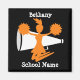 Cheerleader's magnet with cheer megaphone and cheerleader in black, white and orange. Customise with your name and school name, change text or remove text. The background colour can be changed or other colour choices are available. Great gift or stocking stuffer for the cheerleader in your life. Buy in bulk and pass out at the pep rally!
