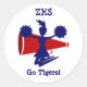Cheerleader's stickers with cheer megaphone and cheerleader in red, white, and blue. Customise with your name and school name, change text or remove text. The background colour can be changed or other colour choices are available. Great gift or stocking stuffer for the cheerleader in your life. Buy in bulk and pass out at the pep rally!