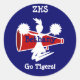 Cheerleader's stickers with cheer megaphone and cheerleader in red, white, and blue. Customise with your name and school name, change text or remove text. The background colour can be changed or other colour choices are available. Great gift or stocking stuffer for the cheerleader in your life. Buy in bulk and pass out at the pep rally!