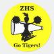 Cheerleader's stickers with cheer megaphone and cheerleader in black, gold, and white. Customise with your name and school name, change text or remove text. The background colour can be changed or other colour choices are available. Great gift or stocking stuffer for the cheerleader in your life. Buy in bulk and pass out at the pep rally!