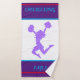Cheerleading bath towel in purple and white. Personalised name.