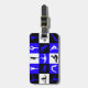 Cheerleading block luggage tag in team colours blue, black and white. Tag features 15 popular cheerleading stunts, jumps and tumbling skills.