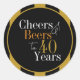Cheers and Beers 40 Years Black and Gold Stripe Classic Round Sticker