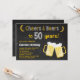 Cheers and Beers 50th Birthday Invitation. Adult Birthday. Beer Birthday for men. Chalkboard Black and White Background. For further customisation, please click the "Customise it" button and use our design tool to modify this template.