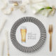 A fun casual vibe for celebrating a 50th birthday, this "Cheers and Beers" birthday party plate has a tall glass of frothy beer and whimsical text. A black and white starburst pattern around the edge of the plates adds a stylish look to the design. You can personalise with the age with any age. Plates are available in 2 sizes: 7-inch diameter and 9-inch diameter.