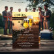 Bachelor party invitation featuring a sunset at a lake with two beer glasses at a jetty. On the back side you can choose whether you would like to display a dark wood background or a larger image of the glasses. Beautiful for an outdoor celebration, pub crawl or a BBQ.