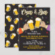 Awesome Cheers and Beers Retirement party invitations. Features two arms cheering with big mugs of beer on a chalkboard background. Great retro hip vibe.